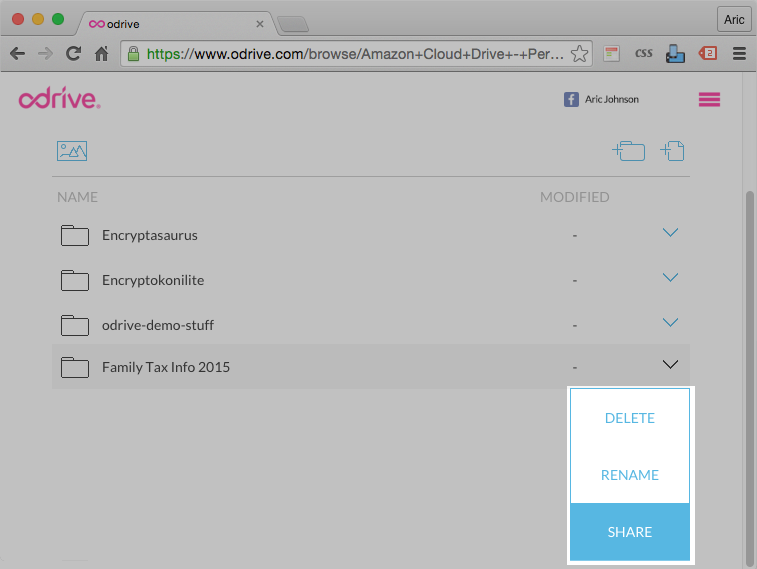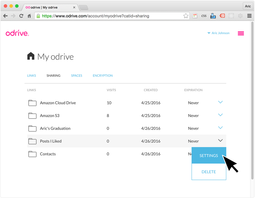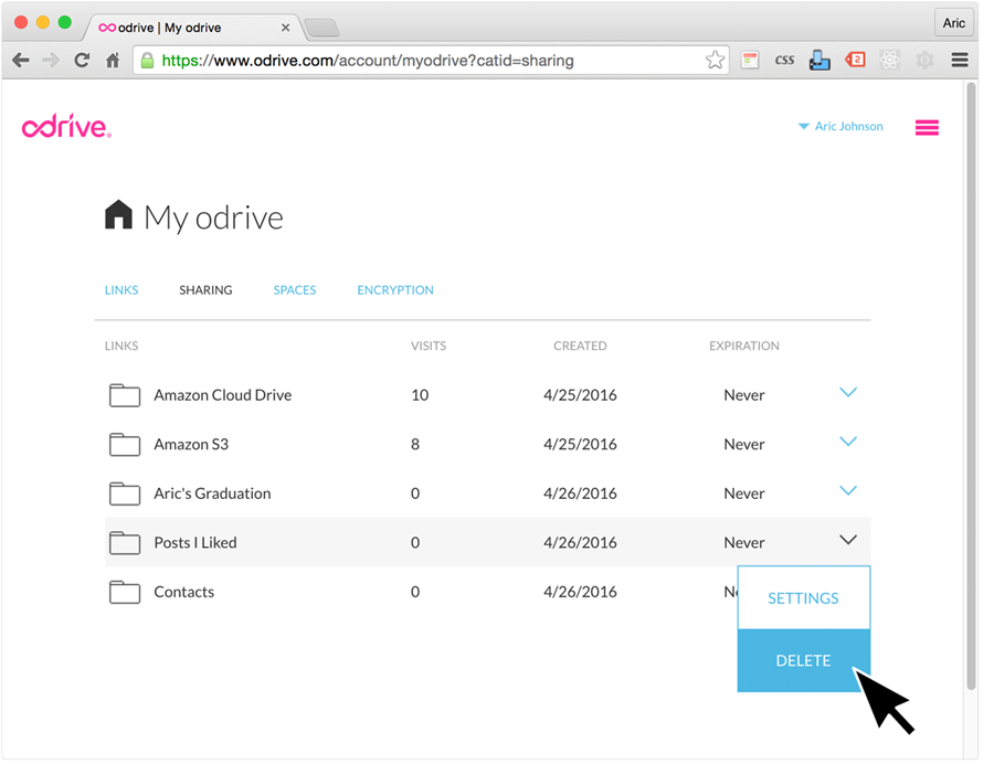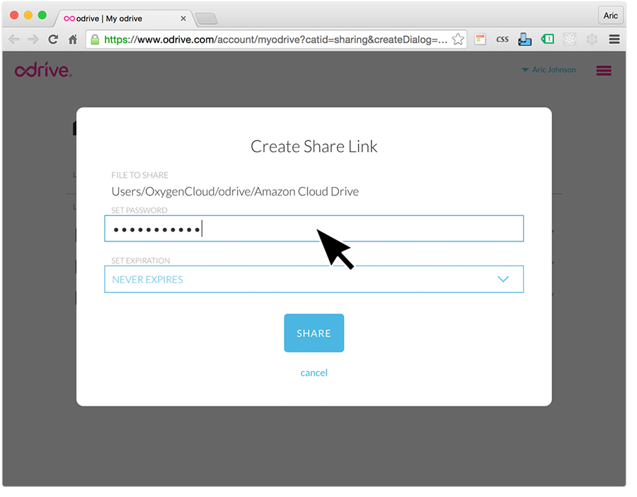 Select "Sharing" from the My odrive page top header tab options
