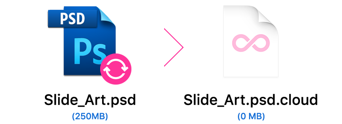 Placeholder files (.cloud) and folders (.cloudf) are empty stubs that represent actual content in the cloud. They automatically turn into real files when you need them. Using placeholders allows you to see all the files and folders in the cloud without downloading them to your computer.