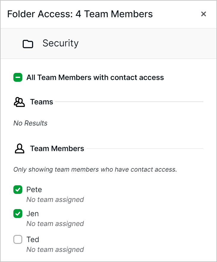 All existing Canopy-level permissions on Contacts and Folder Access are obeyed. Your users will only